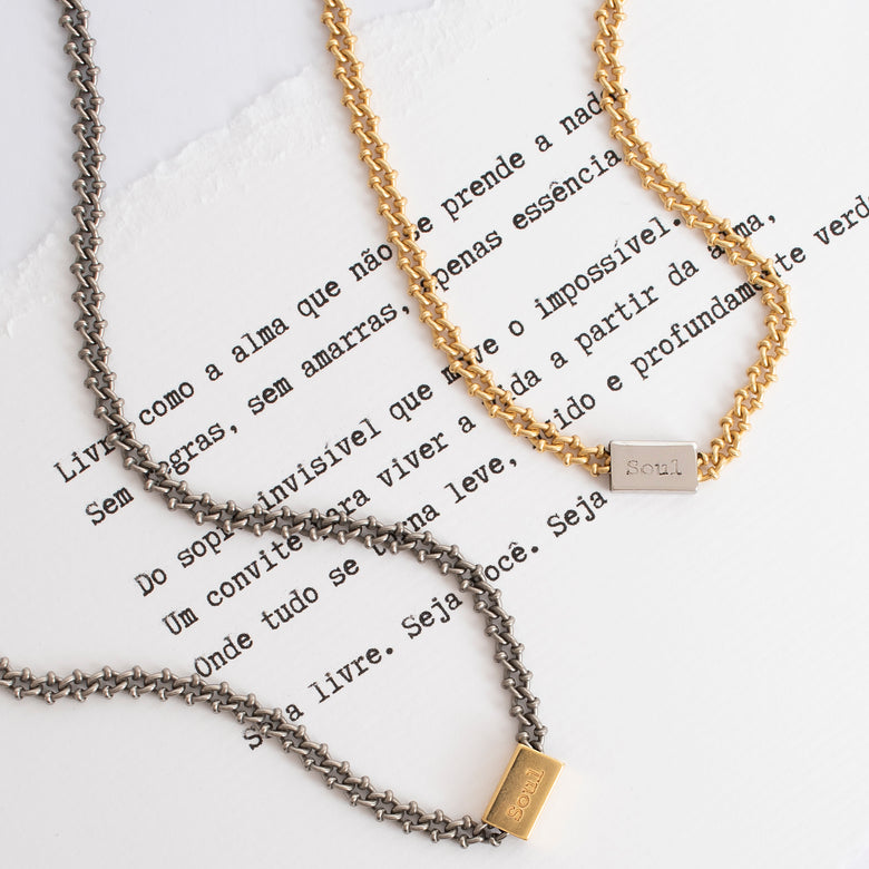 As palavras gravadas em cada coleção não são apenas frases: são mantras vivos, pulsando em forma de joia, sussurrando coragem, expansão, intuição e liberdade no compasso dos seus dias.